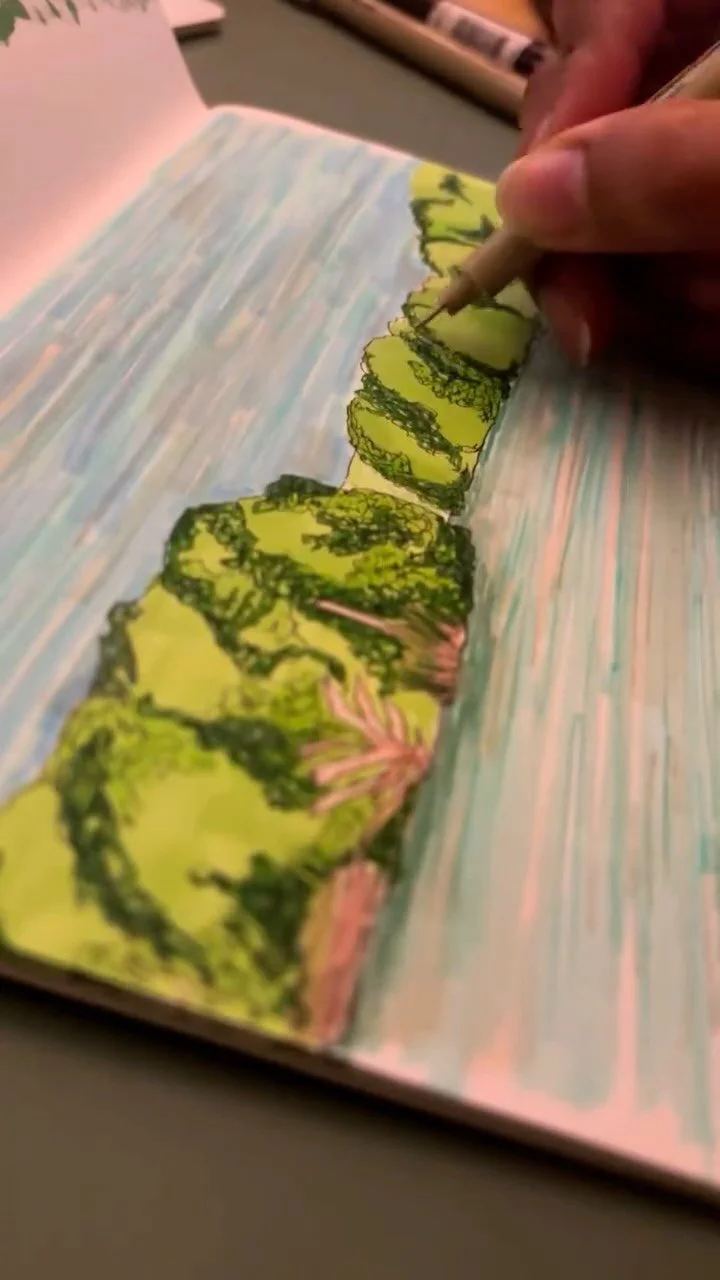I love exploring new places and experiencing new things, for me documenting this through my photography and sketchbooks, capturing vibrant colours of my travels always puts a smile on my face. My favourite things to sketch include architecture from across the world, plants in any shape or form and most recently, animals, big, small or tiny.